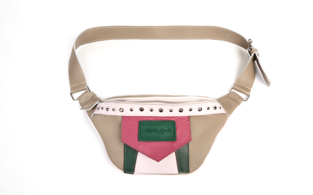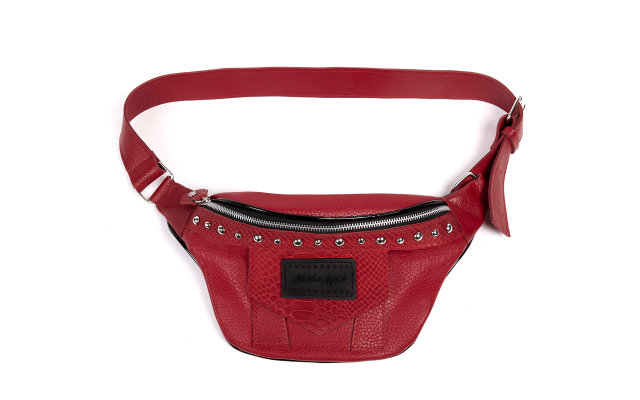 #CARDERiñonera confeccionada en cuero. Interior forrado con tela personalizada de la marca. Acceso superior a través de cierre metálico. Bolsillo frontal combinado en texturas de cuero y colores. Correa regulable de cuero. Bolsillo antirrobo en la espalda. Posee chapa pvcde marca. Frente trabajado con tachas bombé en diferentes tamaños.