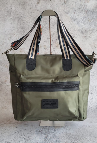 #BOLSO bolso de tela impermeable, forrado en Silver, combinado con cintas sublimadas de la Antonia.