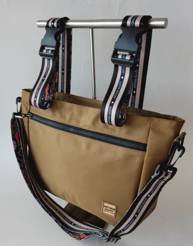 ✔️ tiene correa larga desmontable para que la uses como cartera o bandolera y dos hebillas bronce con correas cortas con para usarlo en tu cochecito de bebé o en tu carry on.