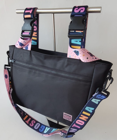 ✔️ las correas son personalizas de Antonia y tiene chapa de PVC a tono también.